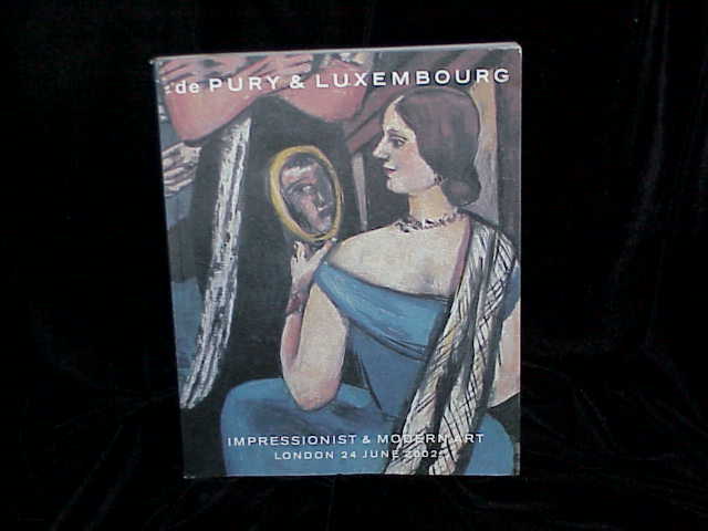 2002 dePURY & LUXEMBOURG: IMPRESSIONIST & MODERN ART, LONDON, 6/24/02. This post auction catalog consists of 105 pages with 34 lots all illustrated in color and all described in detail. Catalog is in fine condition.